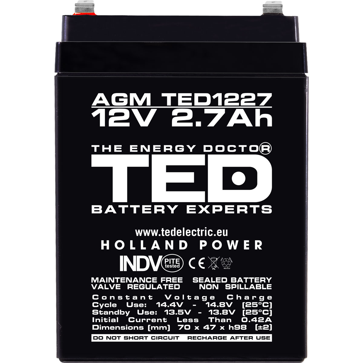 Ted Electric Acumulator Stationar Agm Vrla 12V 2,7A, Dimensiuni 70 X 47 X 98 Mm, Ted Electric Ted003119