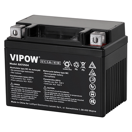 Vipow Acumulator motocicleta 12V 4Ah 45A, fara mentenanta, 113 x 70 x 85 mm