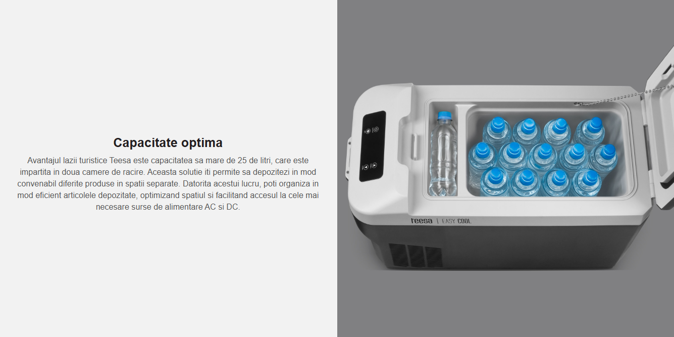 Avantajul lazii turistice Teesa este capacitatea sa mare de 25 de litri, care este impartita in doua camere de racire. Aceasta solutie iti permite sa depozitezi in mod convenabil diferite produse in spatii separate. Datorita acestui lucru, poti organiza in mod eficient articolele depozitate, optimizand spatiul si facilitand accesul la cele mai necesare surse de alimentare AC si DC.
