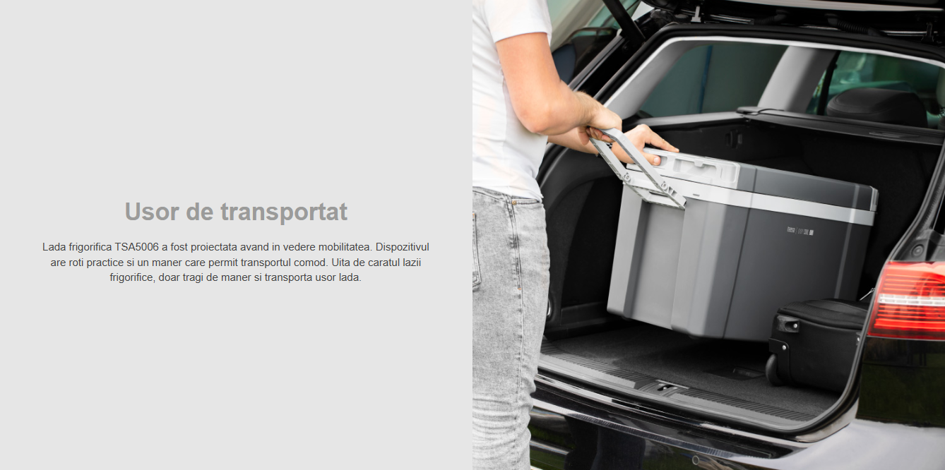 Lada frigorifica TSA5006 a fost proiectata avand in vedere mobilitatea. Dispozitivul are roti practice si un maner care permit transportul comod. Uita de caratul lazii frigorifice, doar tragi de maner si transporta usor lada.