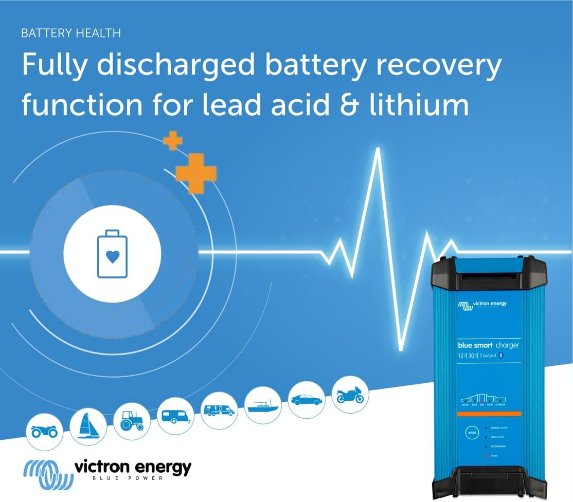 Victron Blue Smart IP22 12V 30A este un incarcator profesional pentru baterii de 12V, destinat aplicatiilor unde este necesara incarcare rapida si control inteligent.