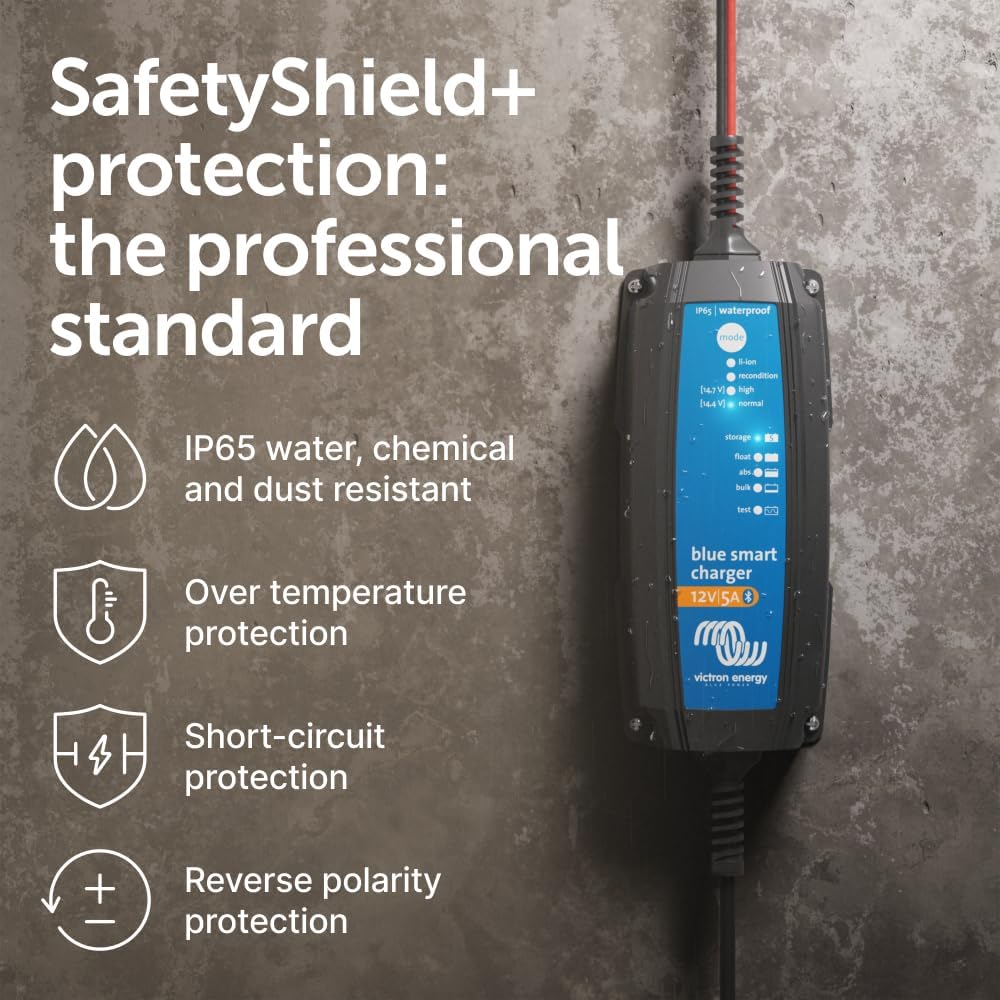 Incarcator redresor inteligent Victron Energy Blue Smart IP65S 12V 5A, cu Bluetooth, pentru baterii auto, moto, AGM, Gel si LifePo4, functie mentenanta si recuperare baterie, DC Connector inclus