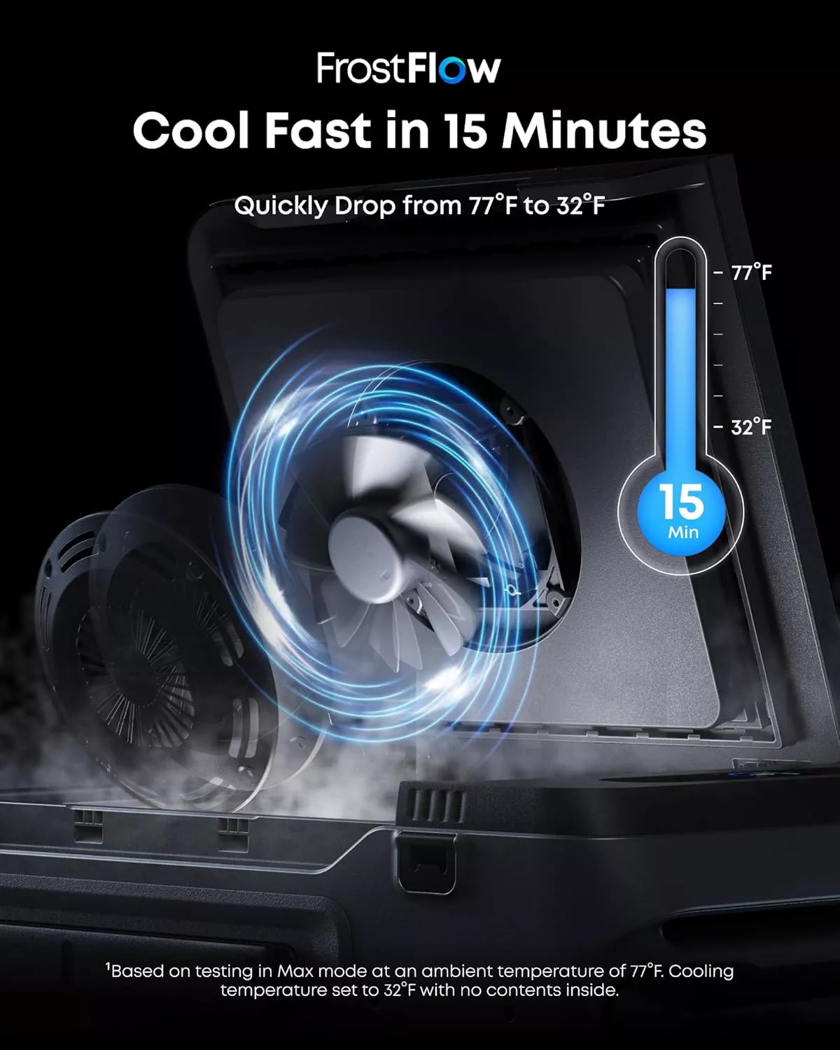 2. Timpul de racire de 15 minute se bazeaza pe testarea in modul Max cu o temperatura ambientala de 25°C. Temperatura de racire a fost setata la 0°C fara continut in interior.