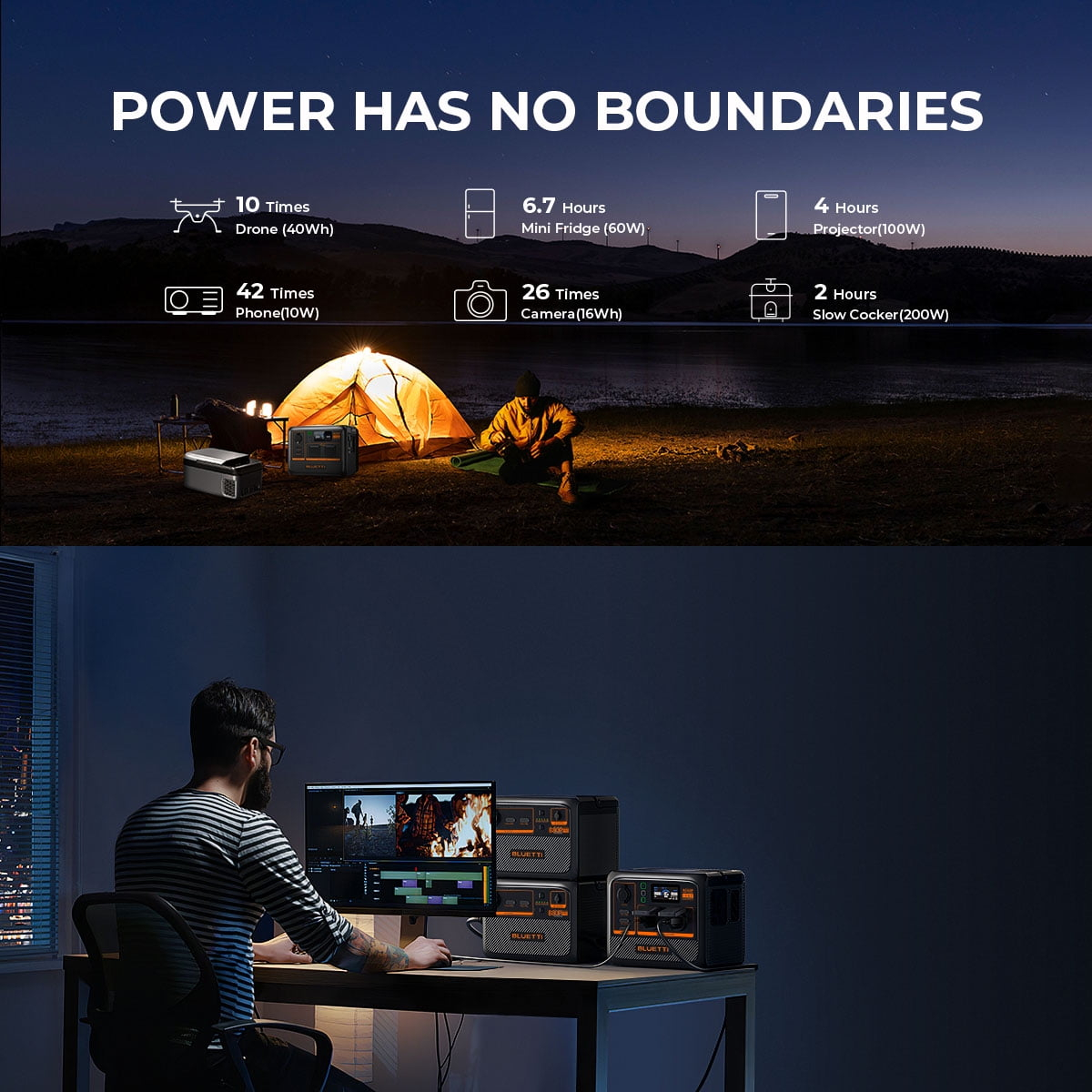 Cu statia de alimentare Bluetti AC60P, puteti alimenta dispozitive electrice de pana la 600 de wati (sarcina de varf de 1200 W). Acestea includ smartphone-uri, tablete, laptopuri, drone, iluminat, echipamente medicale sau coolere. Prin intermediul bateriilor B80P disponibile separat (max. 2) de 806Wh fiecare, capacitatea poate fi extinsa la 2116Wh. Aceasta capacitate de scalare in functie de utilizare face ca AC60P sa fie util in situatiile in care capacitatea nu este intotdeauna necesara si, in schimb, se alege o greutate mai mica de calatorie.
