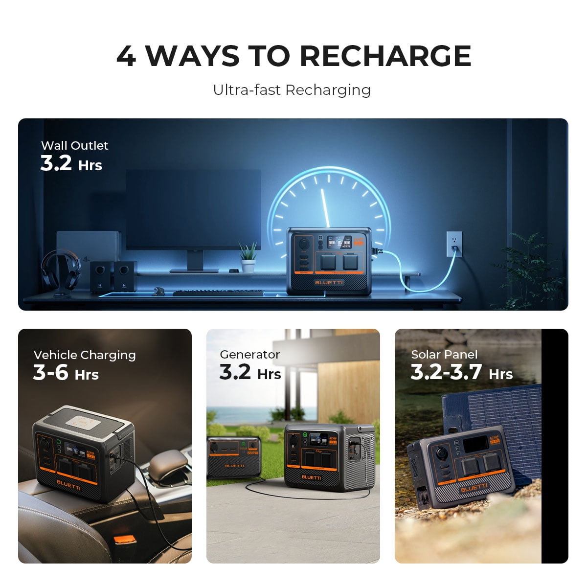 AC60P accepta patru metode de incarcare, inclusiv adaptor, masina, solar si incarcare cu generator. Cu o incarcare AC de 600 W, AC60P dureaza doar 45 de minute pentru a se incarca de la 0 la 80%. Unitatea functioneaza silentios la 45 dB, sau sub 40 dB in modul de incarcare silentioasa, ideal in spatii mici, cum ar fi o camera sau un cort. Cu modul ECO avansat, AC60P se opreste automat pentru a economisi energie atunci cand nu este conectat niciun dispozitiv.