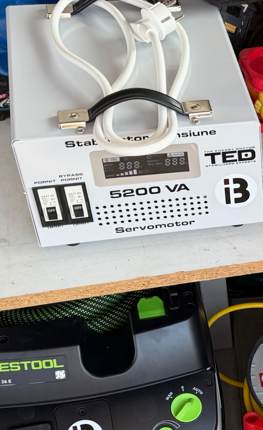 Ted Electric Stabilizator de Tensiune Automat cu Servomotor 5000VA / 3000W, Transformator Toroidal, 140–260V AC, 2 x Schuko, TED