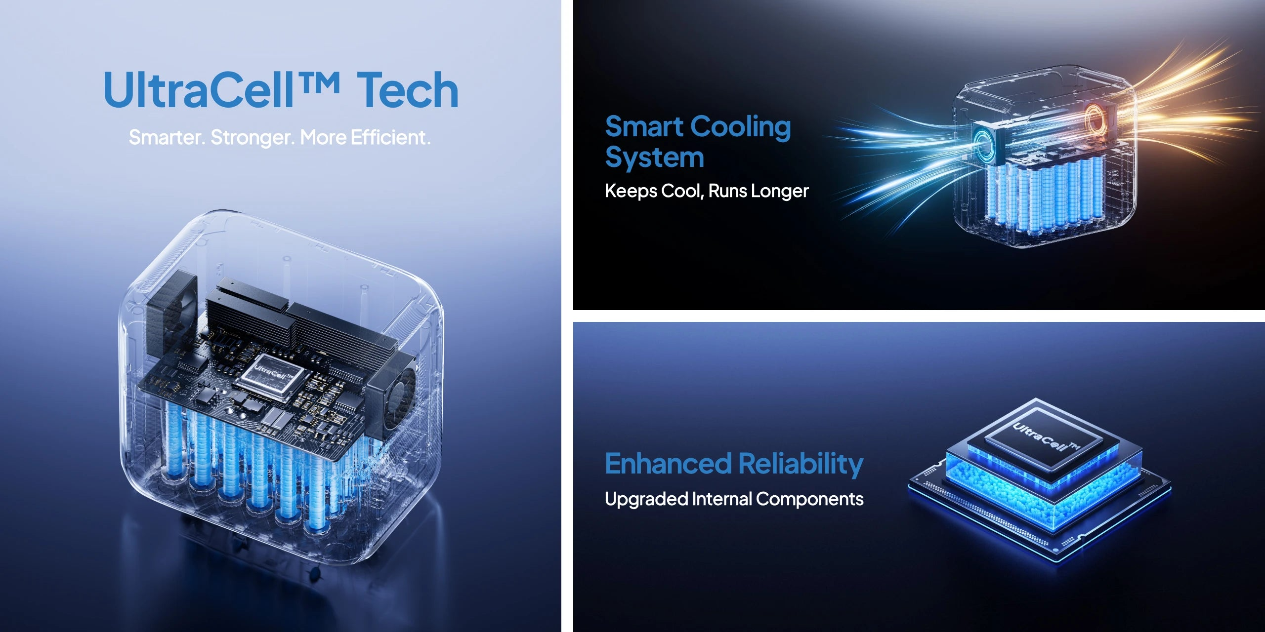 • Siguranta completa: Baterie pe ioni de sodiu, sistem AI-BMS si protectii multiple pentru utilizare fara griji.