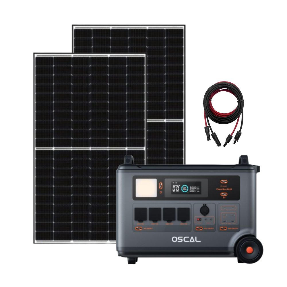 Kitul Oscal PowerMax 6000 este o solutie portabila de energie din gama profesionala, conceputa pentru backup acasa, utilizare off-grid, rulote si medii solicitante. In aceasta configuratie, sistemul este echipat cu 2 panouri fotovoltaice rigide Canadian Solar de 455W, oferind o productie solara semnificativ mai mare fata de panourile portabile standard.