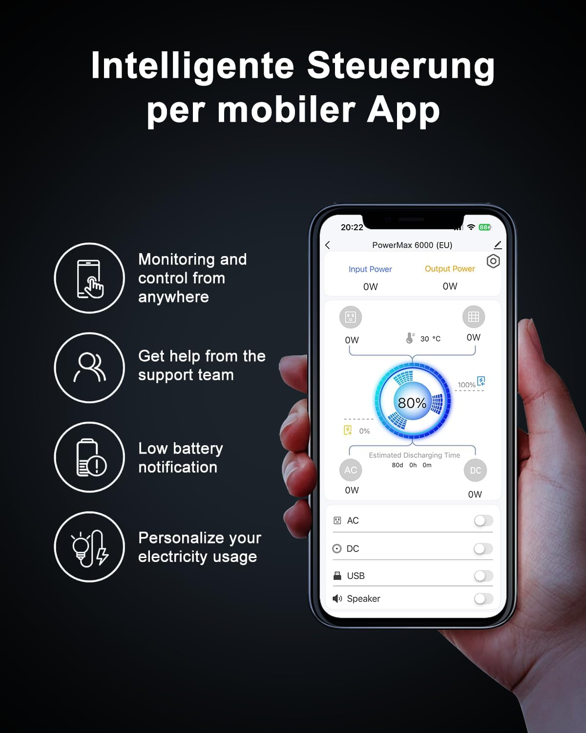 3600Wh capacitate – extensibila pana la 57.6kWh