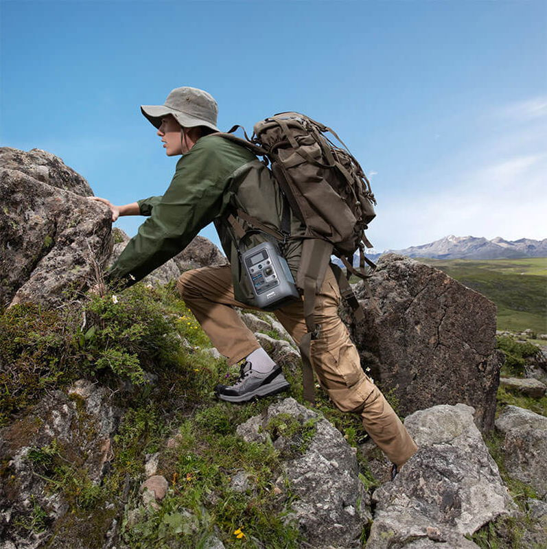 In ciuda capacitatilor sale puternice, aceasta statie de incarcare este compacta si usoara, ceea ce o face usor de transportat. Este proiectata cu o curea de transport convenabila, permitandu-va sa o transportati fara efort dintr-o locatie in alta.